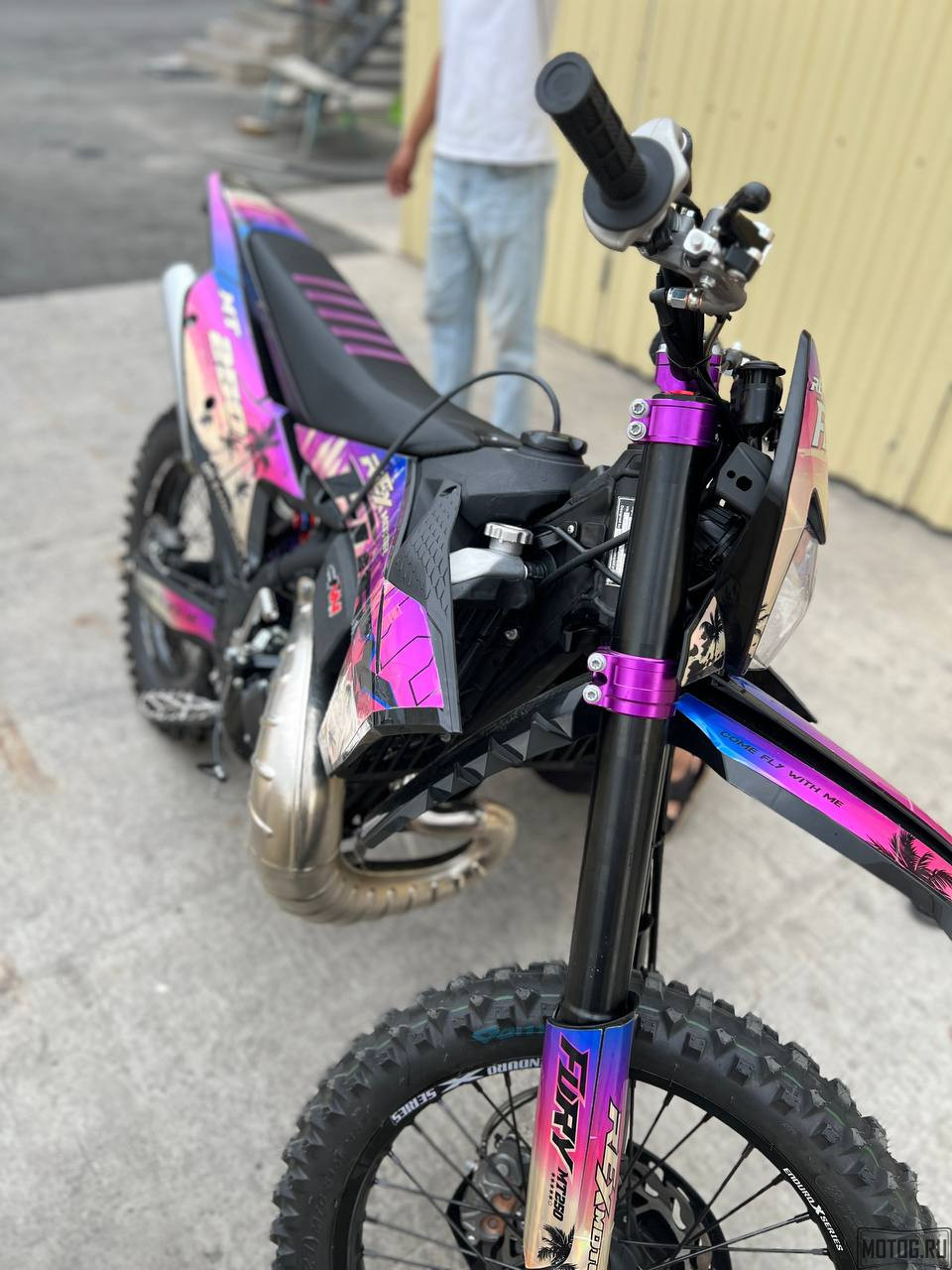 EX FURY 2T — это настоящая находка для тех, кто ищет агрессивный кроссовый и эндуро мотоцикл, способный справляться с любым типом трассы: от каменистых подъёмов до глубокого бездорожья. Оснащённый 2-тактным двигателем LONCIN MT250 (LX1E66MM) с водяным охлаждением и мощностью 28 л.с., этот байк готов к бою с первой секунды старта.